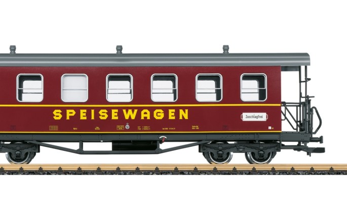 Das LGB Modell ist diesem Wagen nachempfunden. Auch beim Modell wurde die Inneneinrichtung dem Speisewagen angepasst.